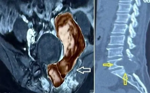 Sau hơn một thập kỷ kể từ ca mổ u sợi thần kinh lành tính (Schwannoma), chị V.T.C.L. (48 tuổi, TP Hồ Chí Minh) bất ngờ xuất hiện đau lưng dữ dội, tê và yếu chân trái. Kết quả chụp MRI tại Bệnh viện Nhân dân 115 (TP Hồ Chí Minh) cho thấy khối u lớn vùng L5-S1, xâm lấn cơ cạnh sống, cánh chậu và phúc mạc, đúng vị trí phẫu thuật cũ.