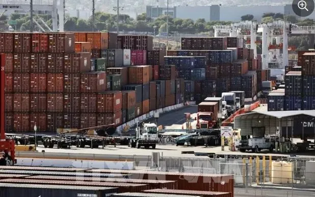 Quang cảnh cảng hàng hóa tại Los Angeles, California, Mỹ. Ảnh: THX/TTXVN