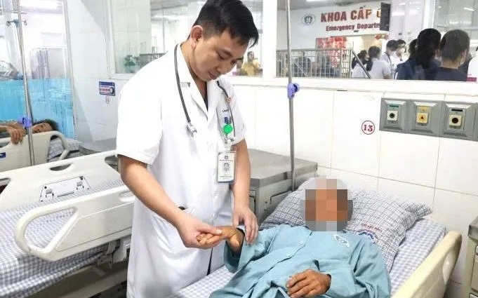 Trường hợp khác là bệnh nhân N.T.B., 61 tuổi, ở Phú Thọ, bị rắn lục cắn khi lên rừng lấy măng. Ban đầu bệnh nhân tự đắp thuốc nam tại nhà nhưng tình trạng sưng phù, đau lan rộng lên cẳng tay, kèm rối loạn đông máu và giảm tiểu cầu.