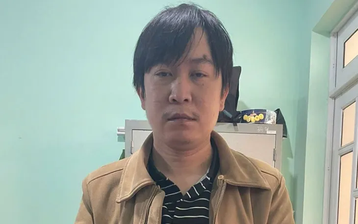 Đối tượng Trần Quốc Huy tại cơ quan công an. Ảnh: Báo Lâm Đồng