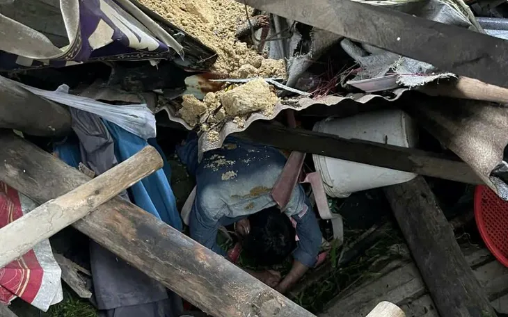 Lán trại bị đất, đá vùi lấp làm anh Nguyễn Quốc Bình tử vong. Ảnh: CATPDN