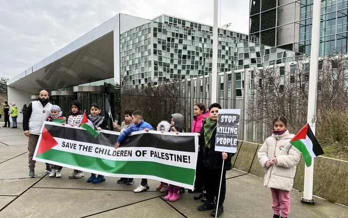 Biểu tình bên ngoài tòa nhà ICC tại La Haye, Hà Lan vào ngày 27/12/2023 (Ảnh: Anadolu/Getty Images)