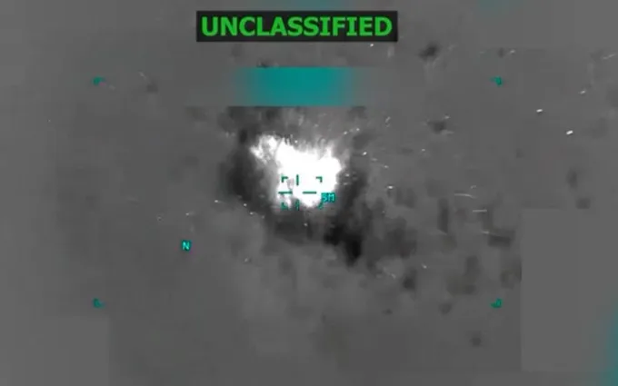 Một đoạn video dài khoảng 30 giây - do Tổng thống Trump đăng tải - cho thấy một con tàu đang đứng yên trên một vùng nước bị trúng một quả đạn trước khi phát nổ.