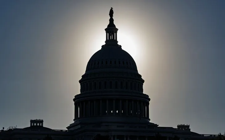 Tòa nhà Quốc hội Mỹ chìm trong ánh nắng buổi sớm khi chính phủ bước sang ngày thứ 10 đóng cửa, tại Washington, ngày 10/10/2025 (Ảnh: AP)