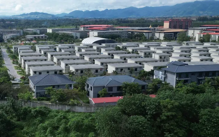 Khu phức hợp KK Park ở Myawaddy, Myanmar, một trong những tụ điểm lừa đảo khét tiếng nhất tại quốc gia này, trong bức ảnh chụp ngày 17/9/2025. (Ảnh: AFP)