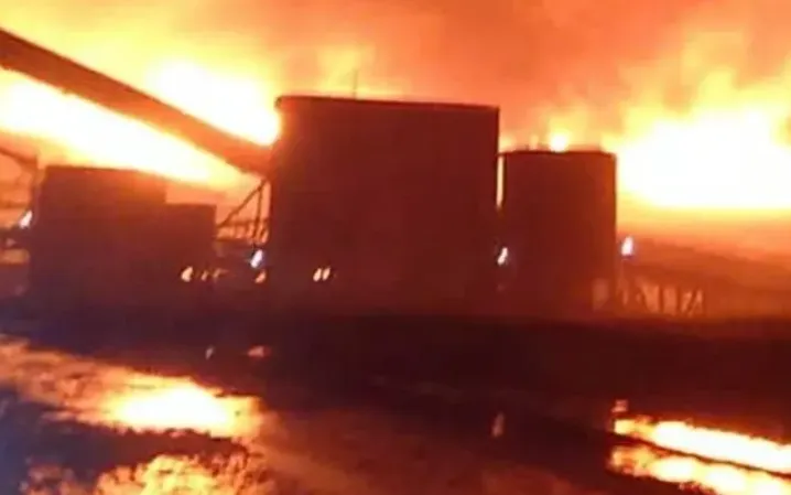 Một nhà máy than DTEK ở tỉnh Dnipropetrovsk bốc cháy sau cuộc tấn công quy mô lớn của Nga vào ngày 19/10/2025. (Ảnh: DTEK/Telegram)
