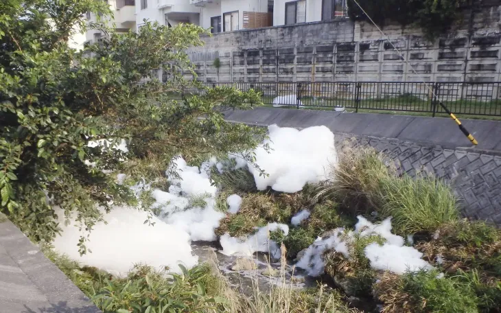 Các khảo sát gần đây tại Nhật Bản đã phát hiện ô nhiễm PFAS trong nước máy, sông suối, cũng như quanh các nhà máy..., làm dấy lên lo ngại về rủi ro sức khỏe như ung thư. Trong một khảo sát toàn quốc do Bộ Môi trường tiến hành năm 2020, nồng độ PFAS cao hơn đáng kể so với ngưỡng tạm thời 50 nanogram/lít của chính phủ đã được phát hiện trong nước ngầm ở Settsu.