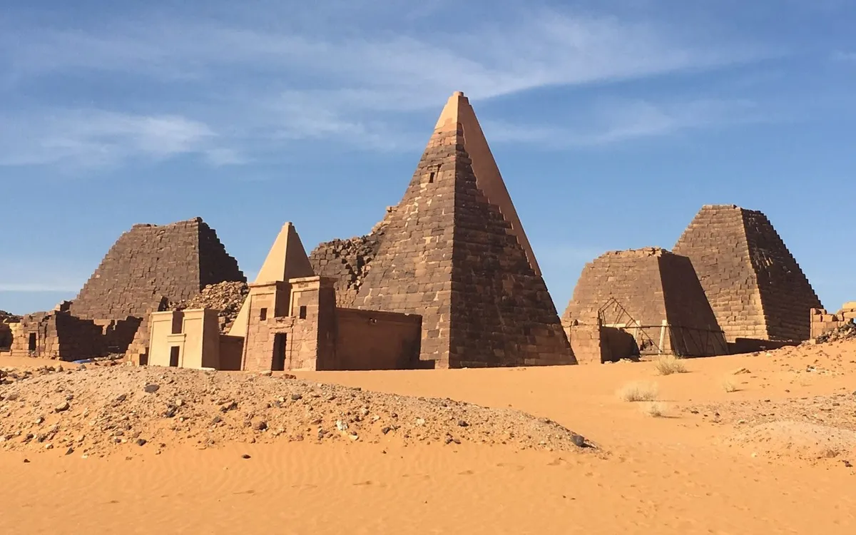 Khác với sự đồ sộ của kim tự tháp Ai Cập, Meroe nhỏ hơn, cao và nhọn hơn, nhưng lại lưu giữ cả một chương sử về một vương quốc từng trị vì dọc sông Nile. Được xây bằng đá sa thạch đỏ, các bức tường đá vẫn còn khắc đầy chữ tượng hình và ký tự Meroitic, kể về những vị vua, nữ hoàng đã nằm lại nơi đây cùng những chiến công, nghi lễ và đời sống tín ngưỡng của người Kush cổ. Mỗi công trình là một cuốn sử đá, lưu lại dấu ấn của một nền văn minh rực rỡ nhưng ít người biết tới.