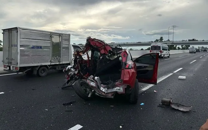 Cú va chạm mạnh khiến 4 người ngồi trên 2 ô tô bị thương. Tại hiện trường, chiếc ô tô 5 chỗ màu đỏ biển kiểm soát 30K - 358.xx hư hỏng nặng, phần đuôi và thân xe bị dập nát. Xe ô tô tải biển kiểm soát 29H - 074.xx bị hư hỏng phần đầu xe. Nhiều mảnh vỡ bắn văng khắp mặt đường cao tốc.