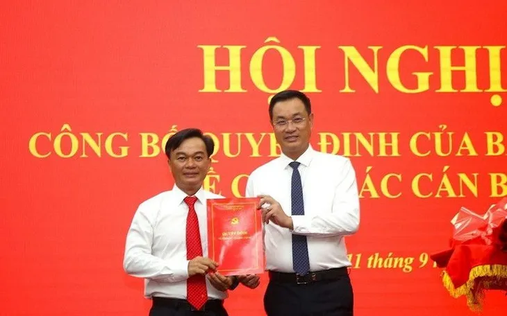 Ông Lê Ngọc Quang, Bí thư Tỉnh ủy Quảng Trị, trao quyết định cho ông Nguyễn Chiến Thắng. (Ảnh: TTXVN)