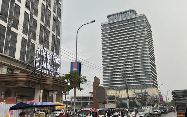 Một khách sạn trá hình tại Campuchia, nơi trung tâm lừa đảo hoạt động ở các tầng trên (Ảnh: Korea Times)