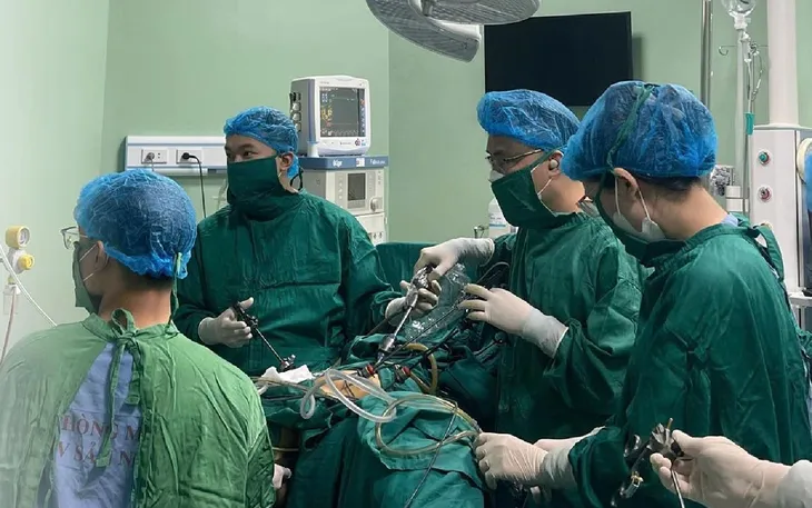 Ekip đã tiến hành phẫu thuật nội soi ổ bụng, bộc lộ và lấy trọn khối u, đồng thời bảo tồn các cơ quan lân cận. Sau mổ, bệnh nhân hết đau vùng chậu, không còn rối loạn tiểu tiện hay sa âm đạo.
