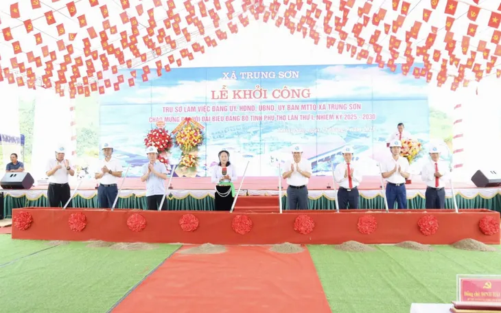 Tại xã Trung Sơn (Phú Thọ) long trọng tổ chức khởi công xây dựng trụ sở UBND xã Trung Sơn theo diện khẩn cấp với tổng mức đầu tư 41 tỷ đồng.
