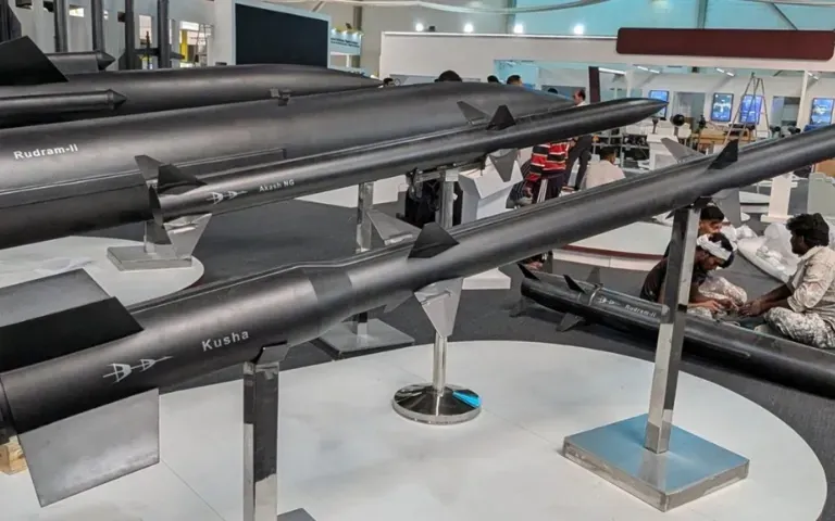 Tên lửa đánh chặn của tổ hợp phòng không thuộc Dự án Kusha của Ấn Độ (Ảnh: X/72h00rsewa)