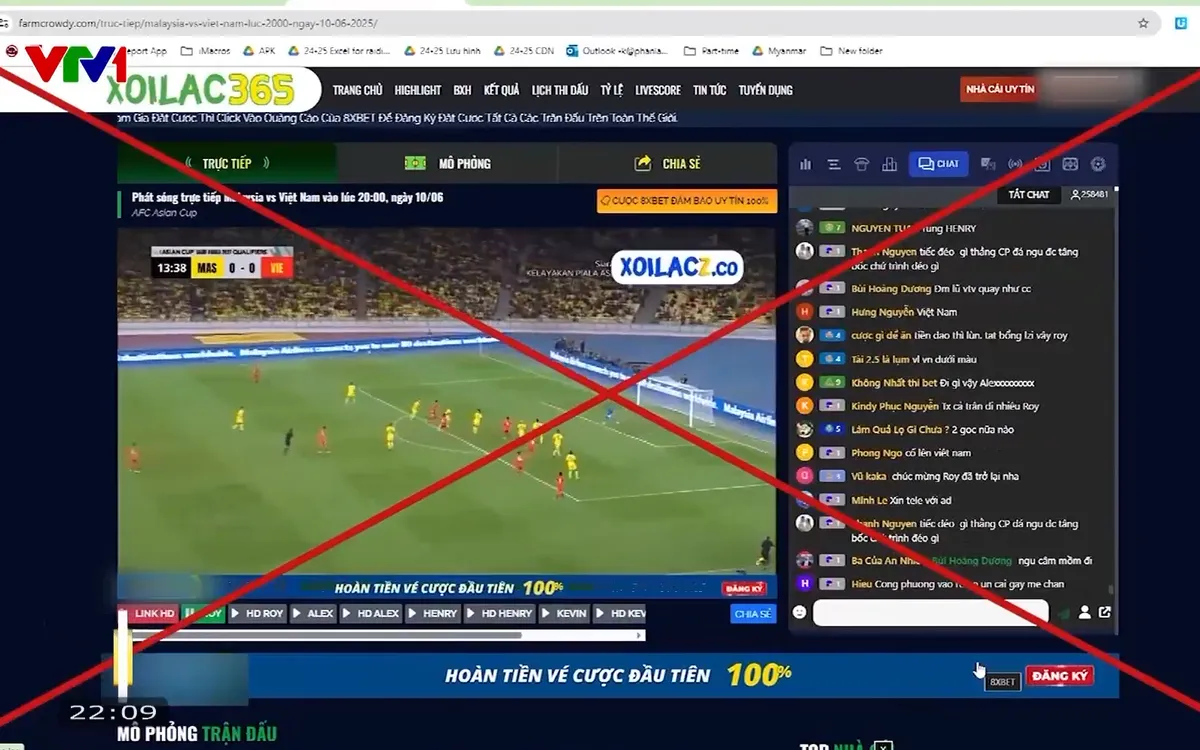 Trận đấu giữa đội tuyển Việt Nam và đội tuyển Malaysia tại vòng loại Asian Cắp vừa qua, bản quyền phát sóng thuộc Đài truyền hình Việt Nam, chỉ sau 90 phút, đã có 164 đường link web lậu phát sóng đồng thời