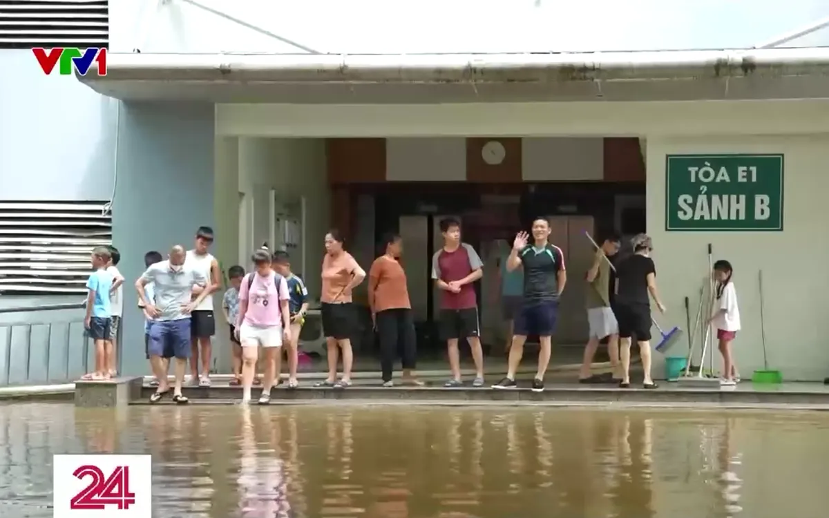 Tại nhiều khu dân cư, người dân cũng gồng mình khắc phục hậu quả. Hầm để xe, thang máy tầng 1 ở nhiều chung cư bị ngập, cư dân phải huy động tối đa nhân lực để thoát nước. Rút kinh nghiệm từ bão số 9, nhiều nơi đã chuẩn bị bao cát chắn cửa. Tuy nhiên, nước lần này dâng cao hơn 20 cm, tràn vào cả bể ngầm, khiến việc chống ngập thêm phần khó khăn.