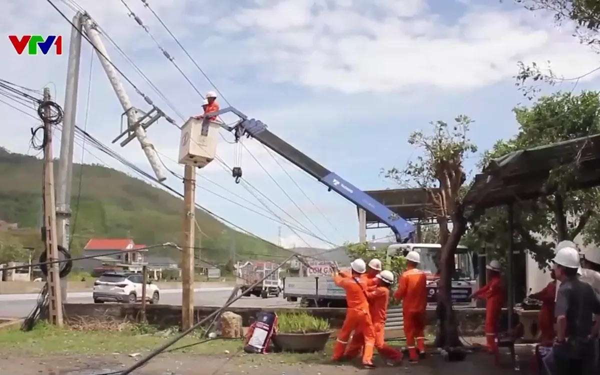 Lắp đặt cột tạm, mang theo vật tư, thiết bị, chuẩn bị sẵn lương thực để làm việc xuyên đêm, đến nay nhiều khu vực đã có điện trở lại.
