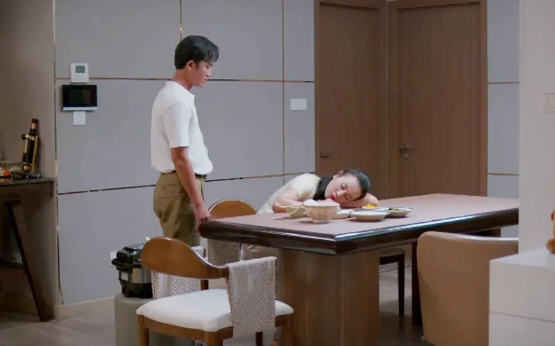 Ở tập 34, khi gặp Linh (Lan Phương) ở bữa hẹn ăn trưa, Đăng (Doãn Quốc Đam) lấy lý do về công ty họp gấp để trốn khỏi bữa ăn, trốn khỏi cảm giác sợ hãi khi ngồi giữa vợ và nữ đối tác từng qua đêm với nhau. Trong tập 35 trên đây, buổi tối về nhà, Đăng tỏ ra khó chịu và giận vợ vì trưa nay vợ đã tự hẹn gặp Linh ăn trưa cùng hai vợ chồng, mà không báo trước cho anh một tiếng. Đăng viện cớ rằng Mỹ Anh quyết hết mọi việc lớn bé ở công ty, anh không biết mình là Giám đốc hay là bù nhìn. Trước vẻ giận dỗi của chồng, Mỹ Anh buộc phải xin lỗi vì hành động đó của cô đã khiến Đăng bị động.