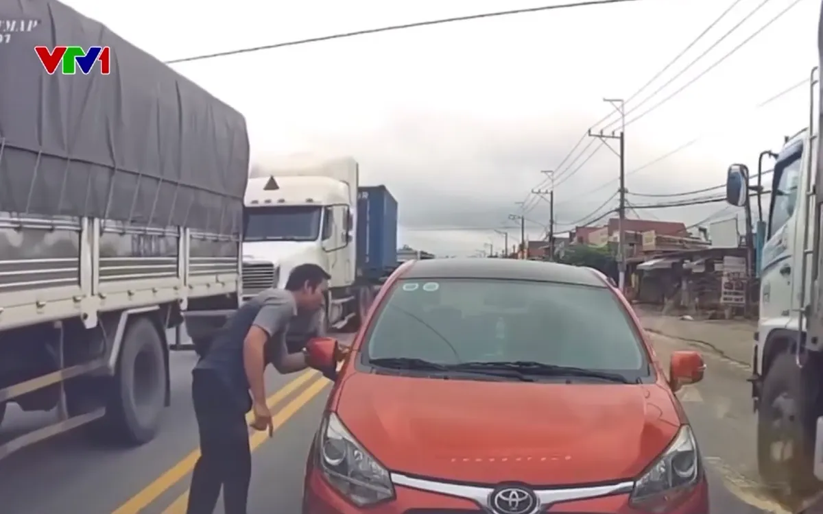Tại một ngã ba, trong lúc các xe đi thẳng đang dừng chờ đèn đỏ, một xe con lấn làn ngược chiều bất ngờ xuất hiện, gây cản trở lưu thông. Dù đoạn đường có kẻ hai vạch liền sơn vàng cảnh báo cấm vượt, lấn làn, tài xế xe vi phạm vẫn cố tình đi vào làn ngược chiều.