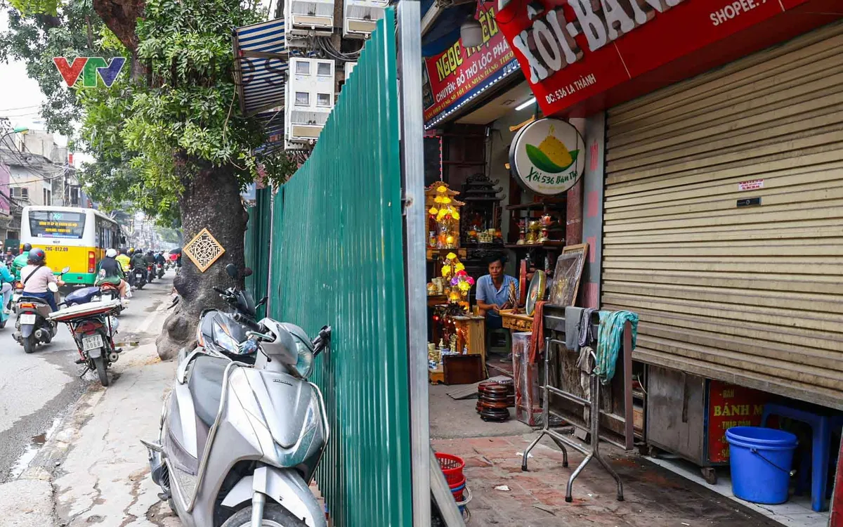Tuy nhiên, một số hộ vẫn chưa bàn giao mặt bằng, tiếp tục sinh sống và kinh doanh phía sau lớp rào tôn; thậm chí treo biển, bày hàng ra sát mép rào để buôn bán. Một vài hộ đang gấp rút di dời tài sản, trong khi hoạt động sản xuất nhỏ lẻ vẫn diễn ra ngay giữa công trường. (ảnh: Minh Vũ)