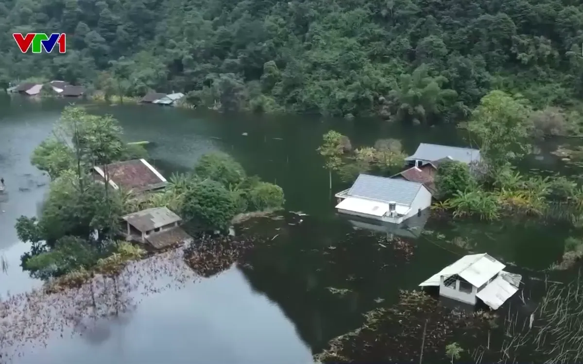 Mỗi ngày, anh Hoàng Văn Học, người dân thôn Lũng Phầy, vẫn phải chèo bè vào căn nhà ở cuối thôn – nơi ngập sâu nhất – để cho gà, lợn ăn. Khi nước lũ dâng nhanh, anh chỉ kịp đưa đàn vật nuôi lên lán dựng tạm trên vách núi, còn nhà cửa và phần lớn tài sản hiện vẫn nằm dưới nước.