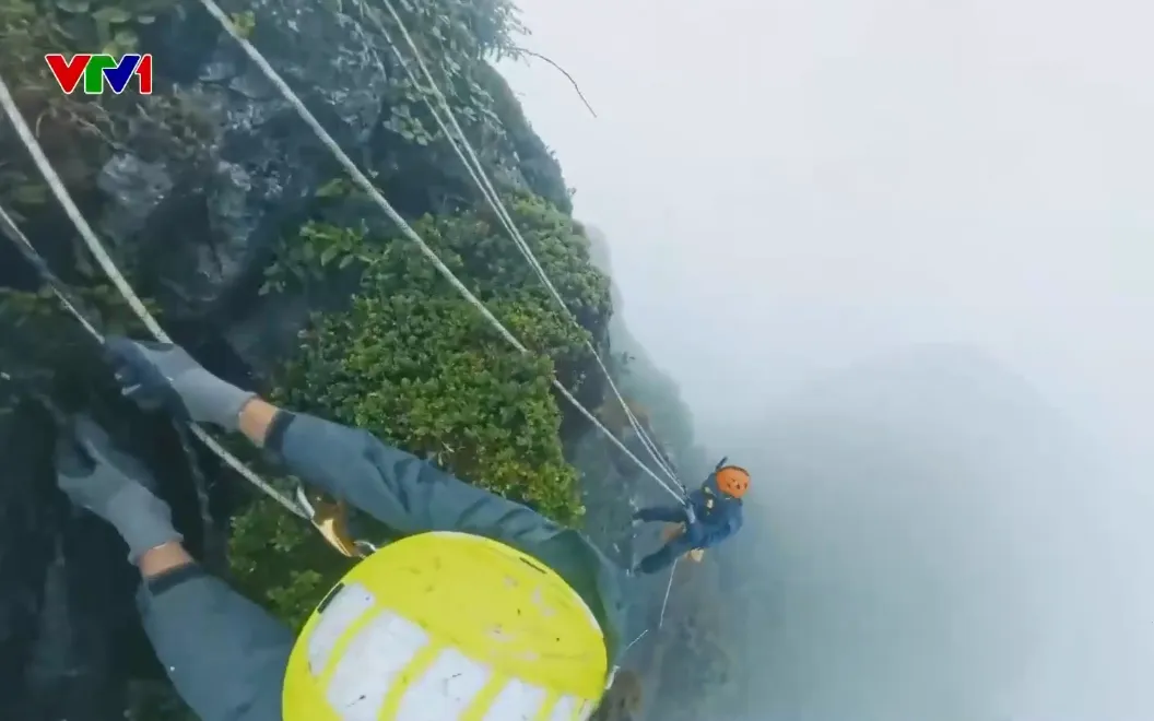 Nắng hay mưa, những công nhân tại đỉnh Fansipan có thể xuống sâu 100 m để nhặt rác.