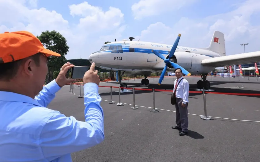 Tại Triển lãm "80 năm hành trình Độc lập - Tự do - Hạnh phúc" ở Trung tâm triển lãm quốc gia (xã Đông Anh, Hà Nội), phân khu “Khát vọng bầu trời” tái hiện 30 năm hình thành và phát triển của ngành Hàng không Việt Nam.có diện tích khoảng 10.000 m2. (Ảnh: VOV)