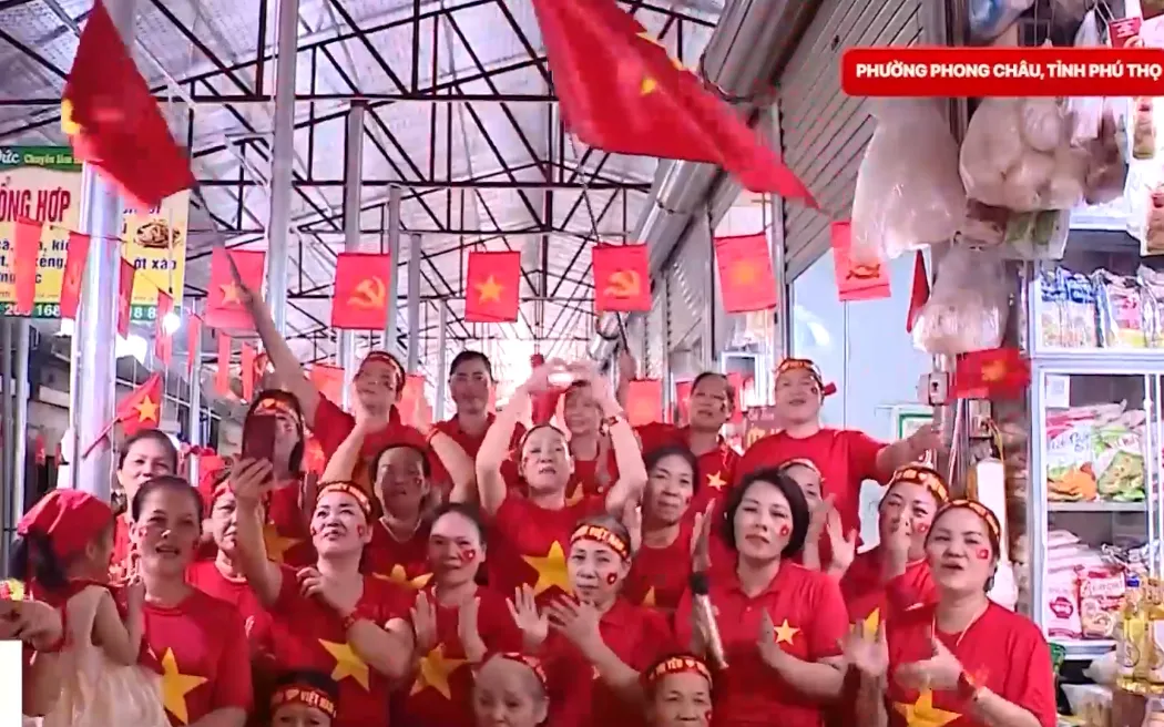 "Các tiểu thương ở chợ rất vui mừng, phấn khởi hướng tới kỷ niệm ngày trọng đại của đất nước. Thể hiện tinh thần yêu nước, các tiểu thương mặc áo cờ đỏ sao vàng và trên mặt ai cũng rất hồ hởi, phấn khởi, hạnh phúc, tự hào vì mình là người Việt Nam", bà Lê Thị Thu (tiểu thương chợ Mè, phường Phong Châu, tỉnh Phú Thọ) cho biết.