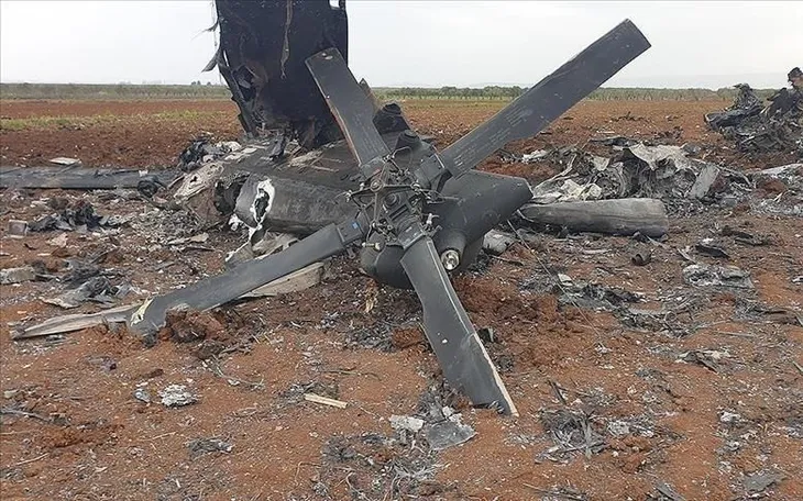 Hiện trường vụ rơi trực thăng ở miền Bắc Pakistan, ngày 1/9/2025 (Ảnh: Anadolu)