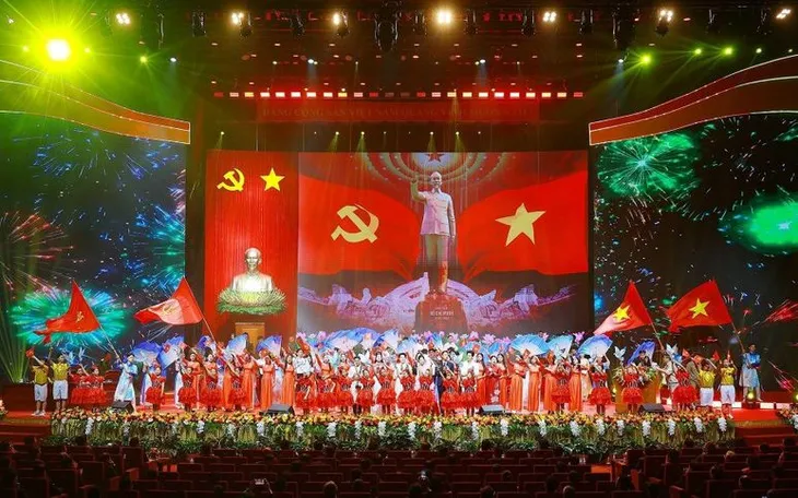 Chương trình nghệ thuật chào mừng Đại hội đại biểu Đảng bộ Chính phủ lần thứ nhất, nhiệm kỳ 2025 - 2030. (Ảnh: TTXVN)