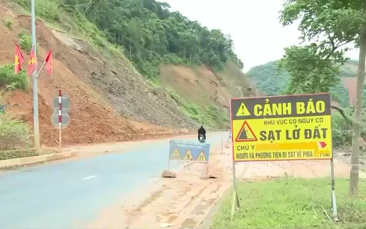 Để đảm bảo an toàn cho các phương tiện lưu thông, lực lượng chức năng đã tiến hành căng dây và cắm biển cảnh báo tại khu vực sạt lở.