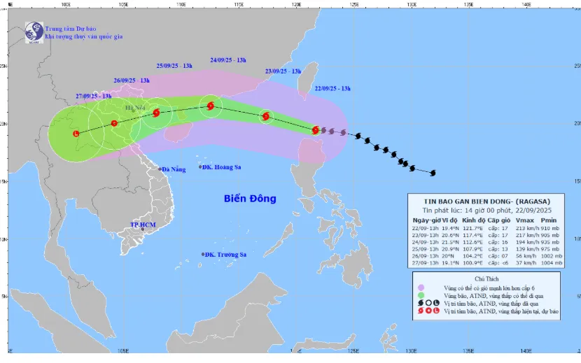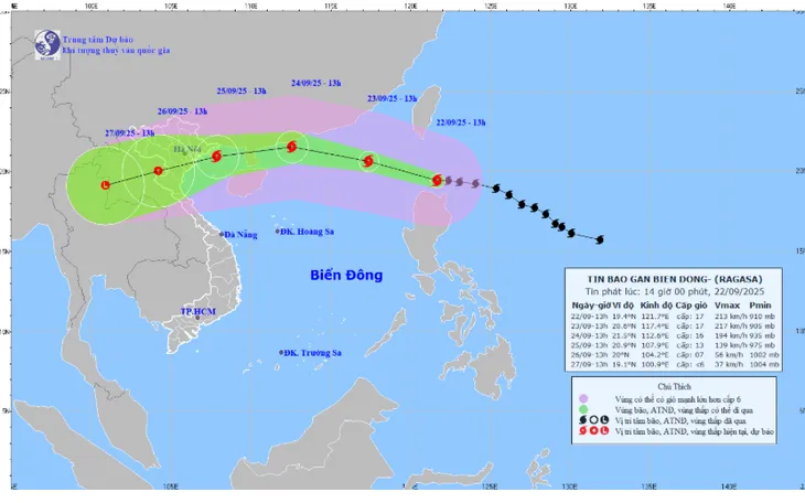 Hồi 13h ngày 22/9, tâm siêu bão Ragasa ở khoảng 19,4°N - 121,7°E, cách đảo Luzon (Philippines) khoảng 140 km về phía Bắc.