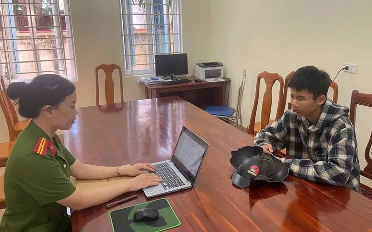 Hà Hoàng Hải N. tại cơ quan công an. (Ảnh: Công an Nghệ An)