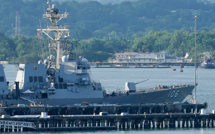 Tàu chiến USS Stockdale của Hải quân Mỹ neo tại căn cứ hải quân Vasco Nunez de Balboa ở thành phố Panama, ngày 20/9/2025 (Ảnh: AP)