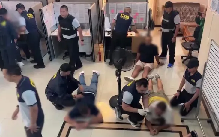Cảnh sát Thái Lan đột kích một tổng đài lừa đảo trị giá hàng triệu USD gần Bangkok nhắm vào người Australia, tháng 6/2025 (Ảnh: ABC)