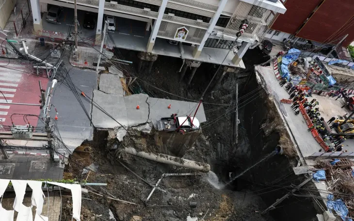 Trước đó hôm 24/9, vào khoảng 7h13 (giờ địa phương), một đoạn đường Samsen, quận Dusit, Bangkok, đã bị sụp mạnh, tạo ra một hố sụt lớn ngay trước Bệnh viện Vajira. Hố sụt được xác định có kích thước khoảng 900 m2 và độ sâu lên tới 50 m. Mặc dù chưa có người bị thương, nhưng sự cố đã khiến 3 phương tiện bị thiệt hại và một số bị kéo xuống hố, đồng thời khoảng 3.500 người phải sơ tán khẩn cấp.