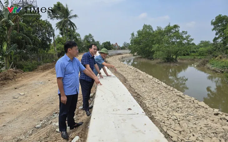 Lãnh đạo xã Hoằng Thanh kiểm tra công trình đê điều trước bão số 5. Ảnh: Quốc Hưng
