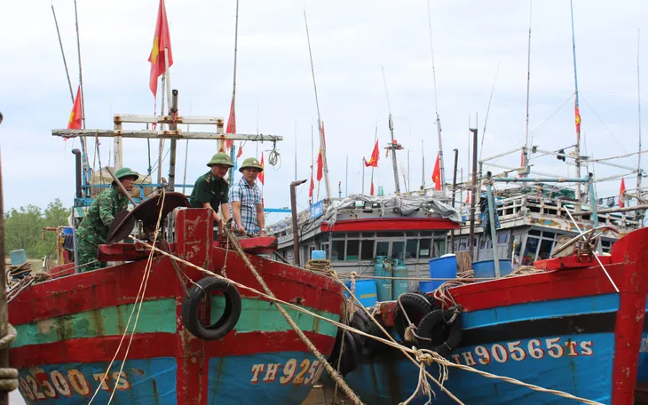 100% tàu, thuyền của ngư dân phường Sầm Sơn ((Thanh Hóa) đã được đưa vào nơi tránh trú an toàn.Ảnh: Xuân Quý