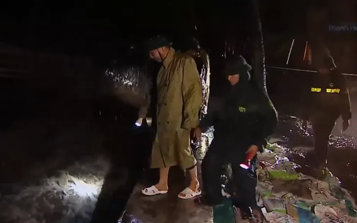 Trước tình hình sóng biển dâng cao uy hiếp bờ biển, chính quyền địa phương và các lực lượng chức năng đã trực 24/24h tuần tra, canh gác đê kè, nhằm phát hiện sớm sự cố, kịp thời xử lý khi có tình huống xảy ra.