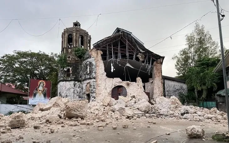 Đền thờ Tổng giáo phận Santa Rosa de Lima ở Daanbantayan, Cebu bị hư hại bởi trận động đất mạnh 6,9 hôm 30/9/2025 (Ảnh: Facebook)