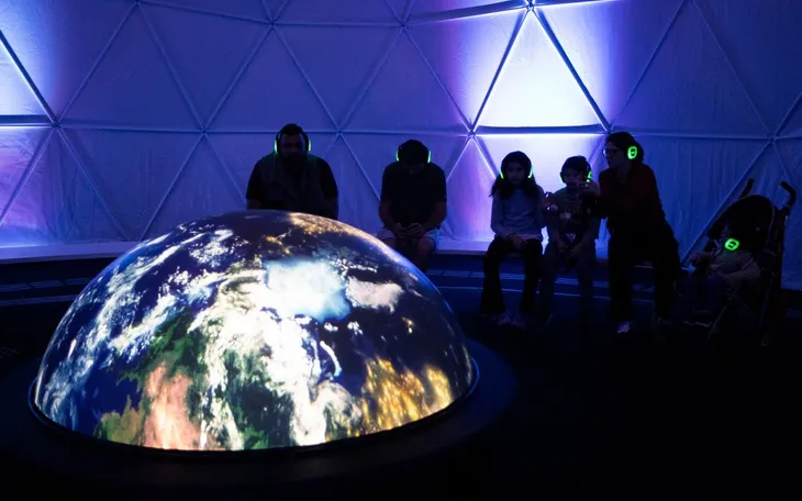 Khách tham quan trải nghiệm không gian "The Lumisphere Experience" tại Bảo tàng Tương lai ở Rio de Janeiro, trước thềm Hội nghị COP30, ngày 9/10/2025 (Ảnh: AP)