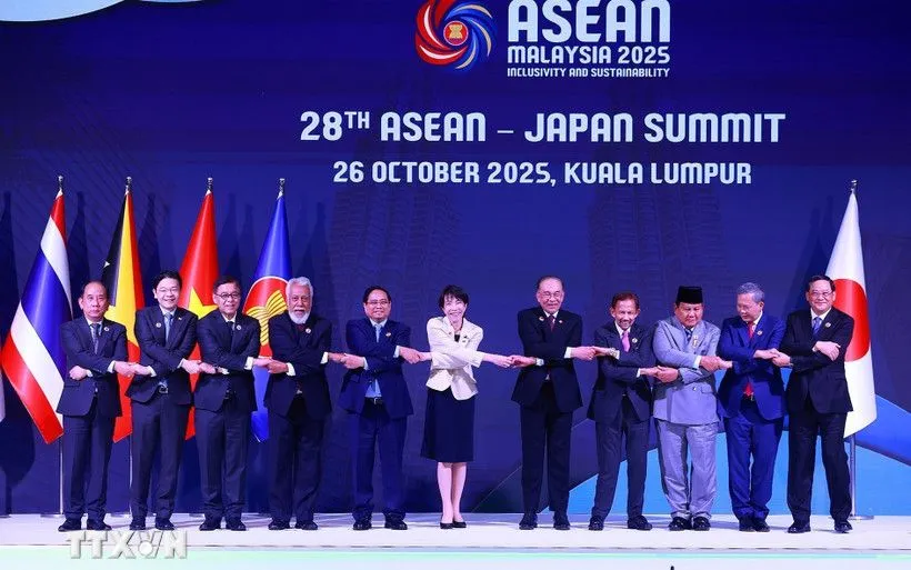 Chiều 26/10, tiếp tục chuỗi Hội nghị Cấp cao ASEAN với các Đối tác tại Kuala Lumpur (Malaysia), Thủ tướng Chính phủ Phạm Minh Chính cùng các nhà lãnh đạo ASEAN và Thủ tướng Nhật Bản Takaichi Sanae đã dự Hội nghị Cấp cao ASEAN - Nhật Bản lần thứ 28.