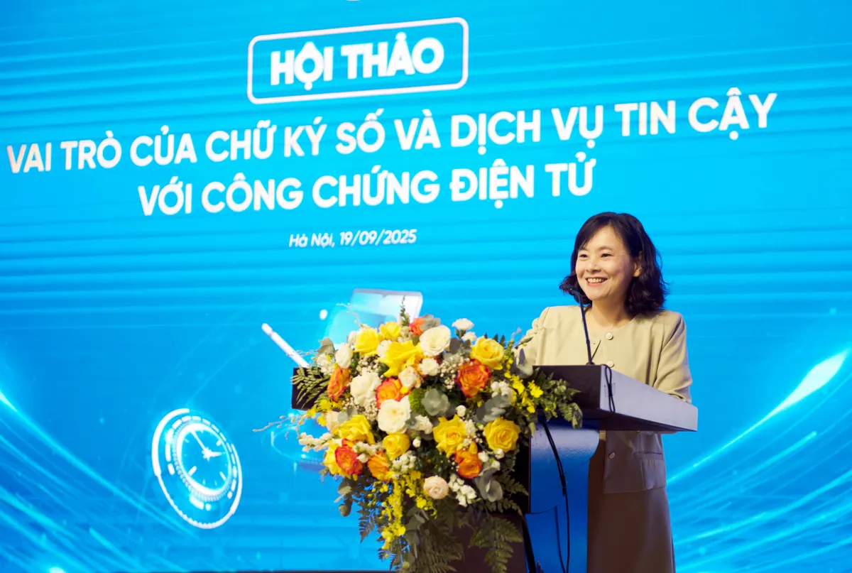Trong bối cảnh đẩy mạnh chuyển đổi số toàn diện, việc ứng dụng công nghệ số vào hoạt động công chứng trở thành yêu cầu cấp thiết. Bà Nguyễn Thị Thơ - Phó Chủ tịch điều hành Hiệp hội công chứng viên Việt Nam cũng nhấn mạnh tầm quan trọng của chữ ký số và dịch vụ tin cậy trong lĩnh vực công chứng điện tử tại Việt Nam.