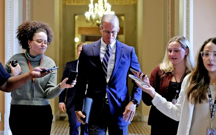Lãnh đạo phe đa số Cộng hòa tại Thượng viện John Thune tại cuộc bỏ phiếu ngày 14/10/2025 (Ảnh: AFP)
