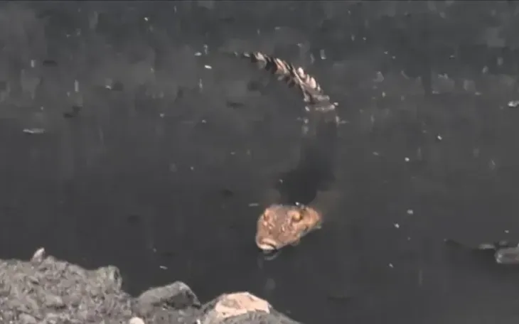 Con cá sấu xuất hiện trên kênh Nước Đen (Nguồn: PLO)