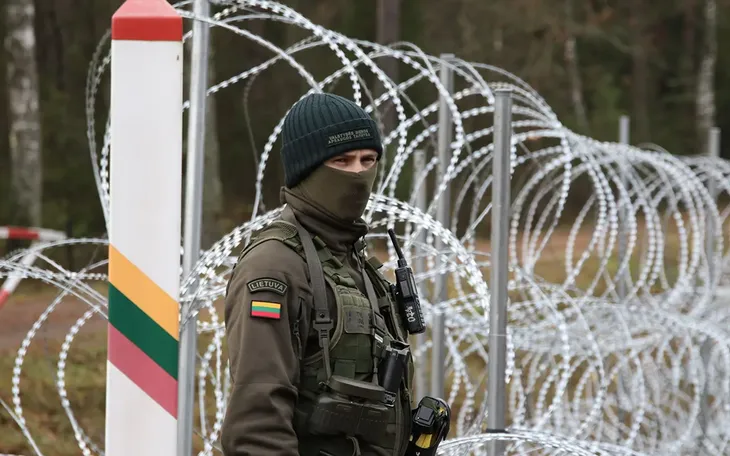 Một lính biên phòng Litva tại biên giới Litva - Belarus (Ảnh: Cục Biên phòng Nhà nước Litva)