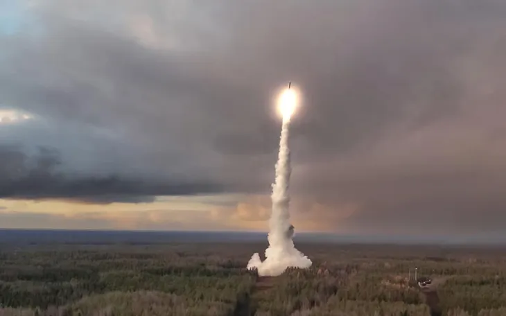 Tên lửa đạn đạo liên lục địa Yars được phóng thử từ bệ phóng Plesetsk ở Tây Bắc nước Nga, tháng 10/2024 (Ảnh: AP)