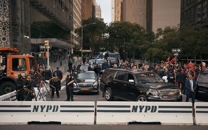 Cảnh sát đứng gác khi Tổng thống Thổ Nhĩ Kỳ Erdogan đến gần trụ sở Liên hợp quốc tại New York, ngày 21/9 (Ảnh: AP)