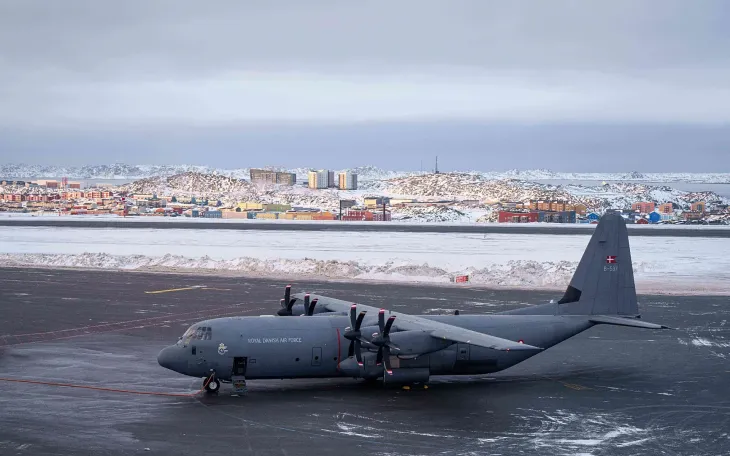 Máy bay quân sự của Không quân Hoàng gia Đan Mạch tại sân bay Nuuk, Greenland ngày 15/1/2026 (Ảnh: AP)