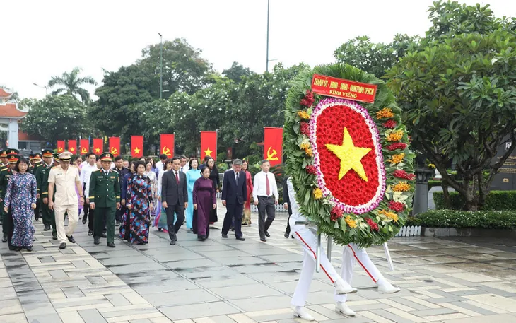 Đoàn thành kính dâng hoa, dâng hương tưởng nhớ Mẹ Việt Nam anh hùng, các Anh hùng liệt sĩ và dành phút mặc niệm. Sau lễ dâng hương, các đại biểu đến từng phần mộ thắp hương tri ân.